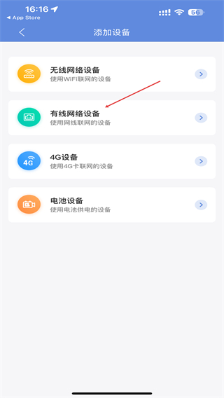 3、进入到添加的页面内,选择并点击有线网络设备的按钮。