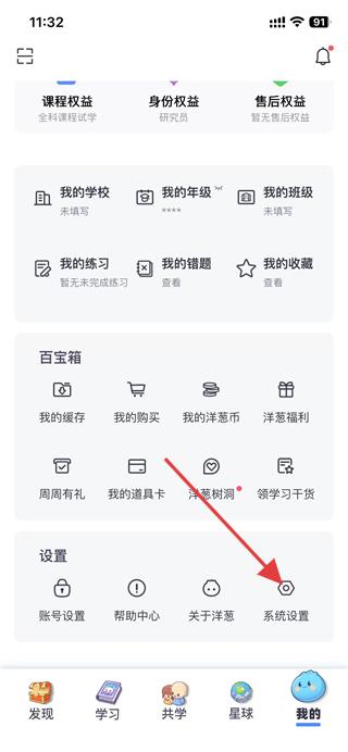 1、打开洋葱学园App,在底部导航栏点击最右侧的我的选项。