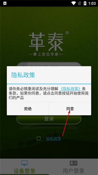 1、查看弹出的隐私政策内容,点击界面中的同意按钮,进入软件的登录选择页面。