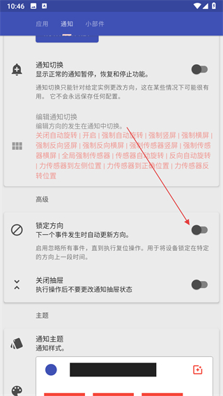 4、点击锁定方向选项右侧的开关按钮,将其切换为开启状态即可启用该功能。