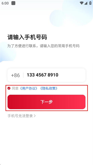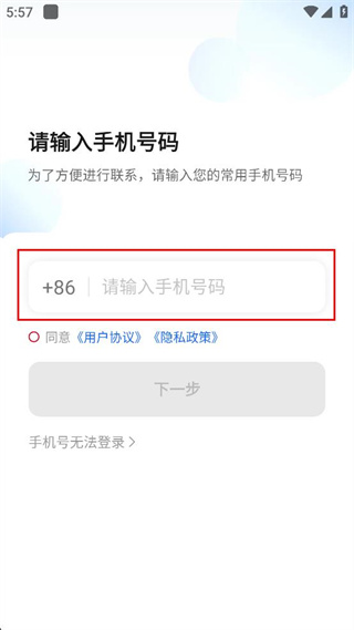2、进入请输入手机号码页面,在对应输入框内填写常用的手机号码信息。