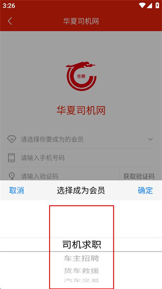 3、从会员类型列表中选择司机求职选项,点击确定按钮完成会员类型选择。