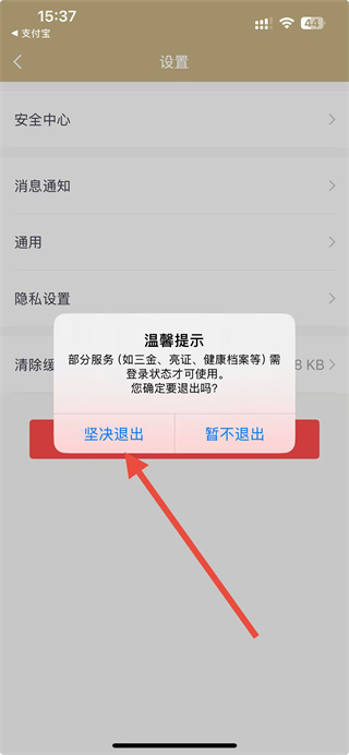 4、在温馨提示框中,点击坚决退出选项,即可完成随申办的退出登录操作。