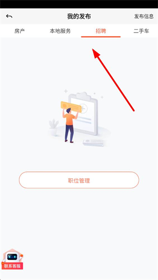 2、在发布分类页面中,点击右上角我的发布选项,可跳转至发布记录的管理页面。