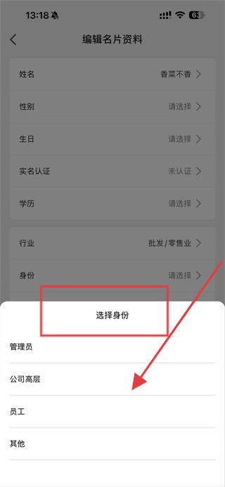 5、在弹出的选择身份菜单中挑选对应身份,即可完成身份信息的修改。