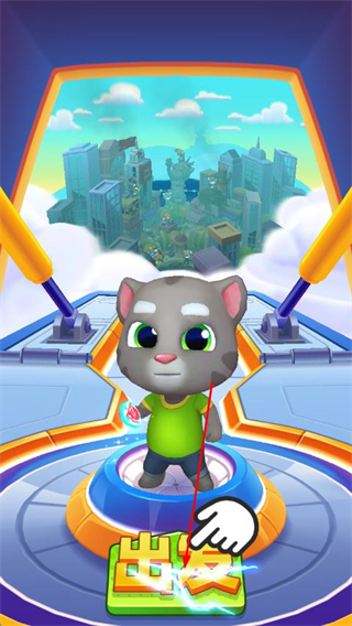 1、进入游戏后,点击界面底部的出发,开启汤姆猫的跑酷挑战。