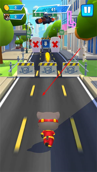 2、在跑酷过程中,滑动屏幕控制汤姆猫移动,躲避道路上的路障、封闭通道等障碍物,同时收集金币。