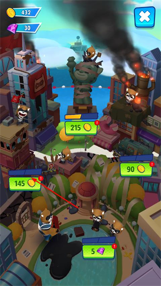 浣熊正在破坏整个世界。玩家需要把它们赶走,然后进行清理和重建。修好一个地方后,就要面对浣熊Boss。玩家击败他就能进入下一个跑酷世界!会去哪里呢?冲浪海滩?还是神庙?