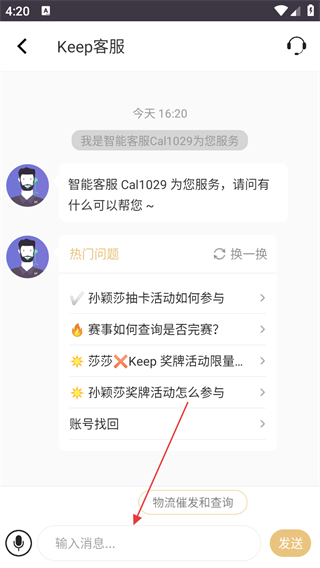 4、在输入框中输入问题,点击发送,与客服沟通。