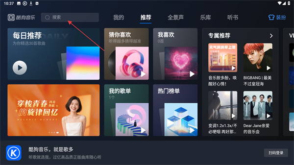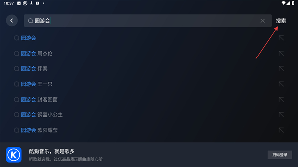 1、在酷狗音乐的界面,点击顶部的搜索框,激活输入状态。