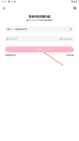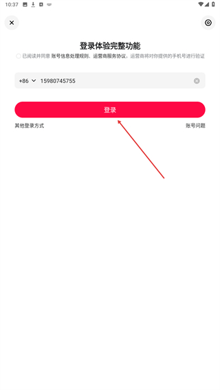 2、在登录的页面内,输入手机号并点击登录的按钮。