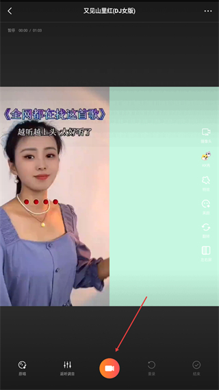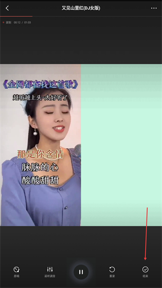 3、演唱结束后,点击右下方结束的按钮即可完成录制。