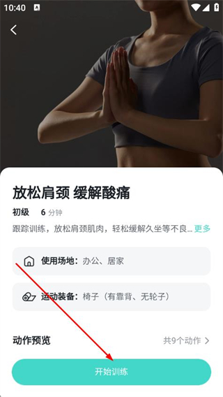 4、在训练界面,跟随视频演示完成对应的动作),按指引完成整个训练课程。