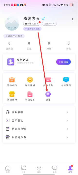 2、在个人中心页面找到设置选项,点击进入设置页面。