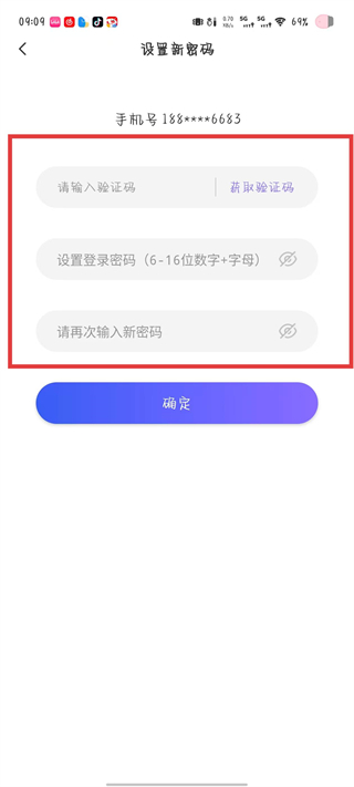 4、点击获取验证码并填写,再输入新密码,点击确定。