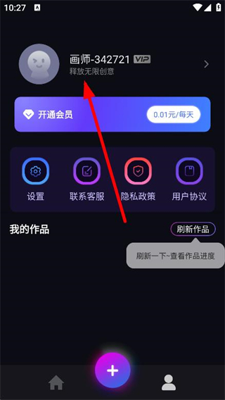 1、打开AI绘画大师,点击底部导航栏的个人中心图标。