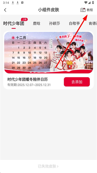 3、在小组件皮肤页面,点击右上角的教程按钮,进入教程页面。