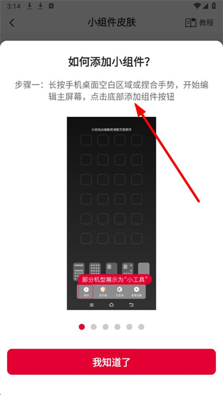 4、在教程页面,即可查看如何添加小组件的详细步骤。