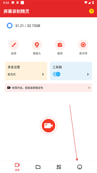 1、打开屏幕录制精灵应用,点击导航栏最右侧的我的选项。