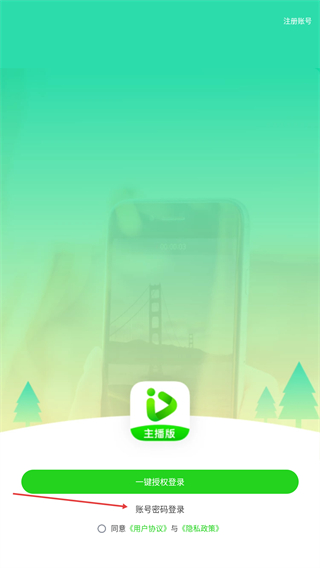 1、启动爱奇艺直播机App,进入时点击账号密码登录。