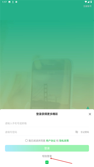 2、进入登录的页面内,点击下方短信登录的按钮。