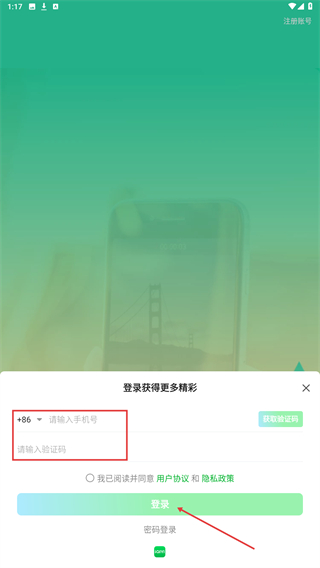 3、输入手机号、验证码后,再点击登录的按钮即可完成。