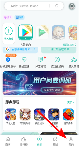1、打开OurPlay应用,点击右下角我的选项,进入个人中心页面。