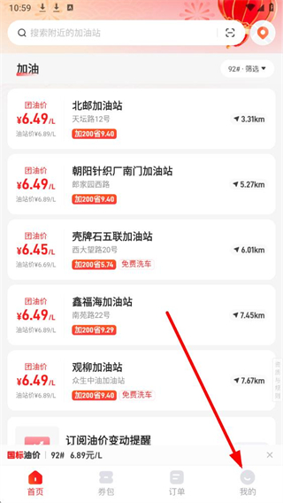 1、在能链团油首页底部,点击我的选项,点击进入我的页面。