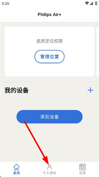 1、打开飞利浦智净家APP,点击底部导航栏的个人资料。