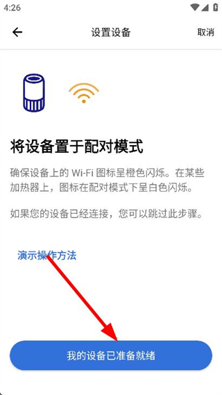 4、点击我的设备已准备就绪,按提示完成设备配对添加。