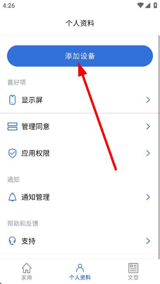2、在个人资料页面,找到并点击上方的添加设备按钮。
