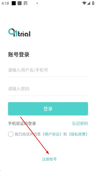 2、在账号登录页面点击注册账号选项,进入注册页面。