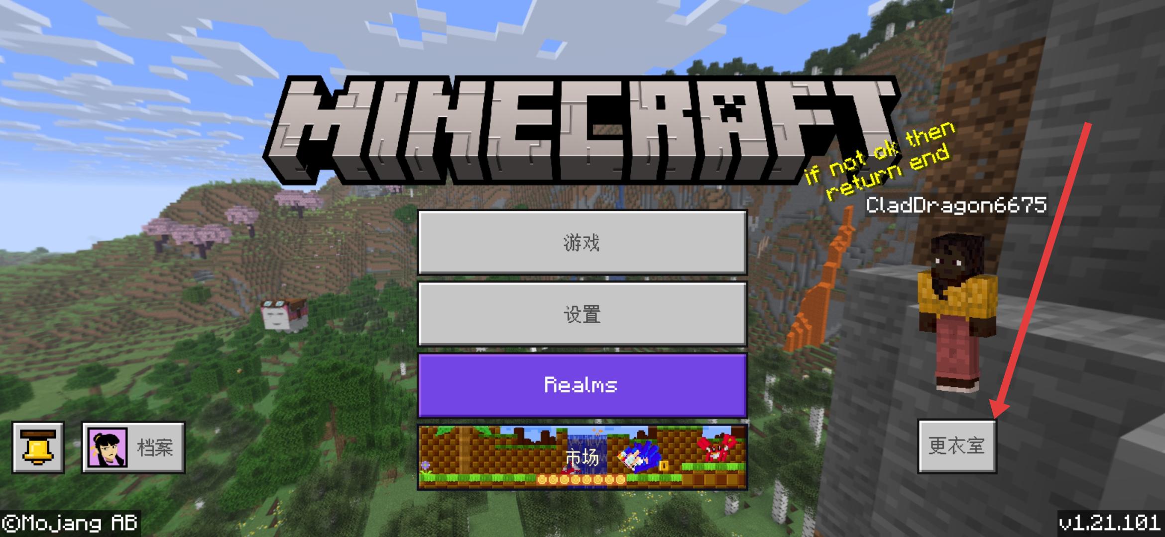 1、进入游戏主界面后,点击右侧更衣室按钮,这是开启皮肤更换操作的入口,点击即可进入皮肤设置相关界面。