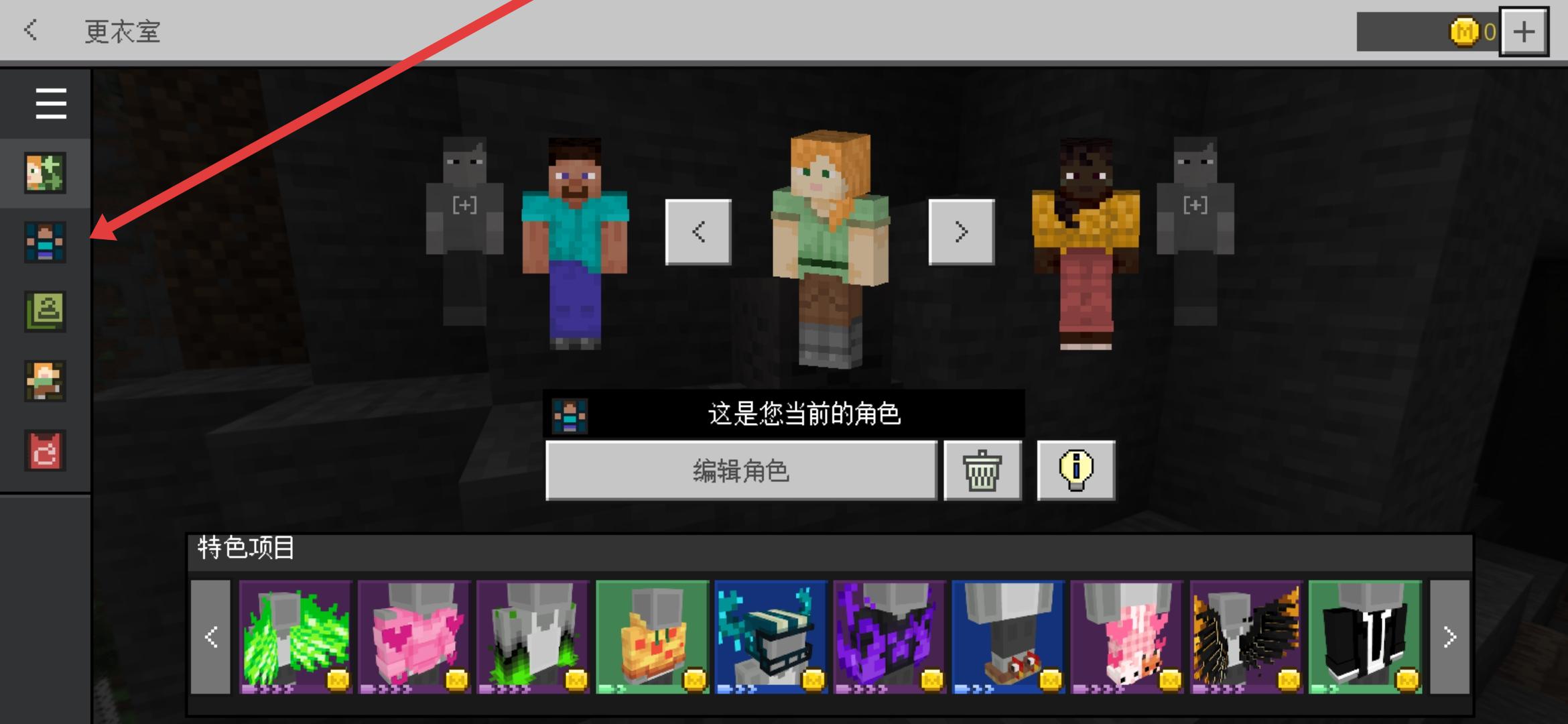3、在更衣室界面,点击左侧角色图标栏选择预设角色,或点击角色下方编辑角色自定义,按步骤完成皮肤更换设置。