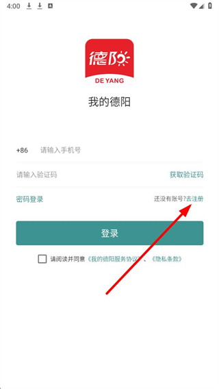 3、在登录页面,找到去注册选项并点击,进入手机号注册页面。