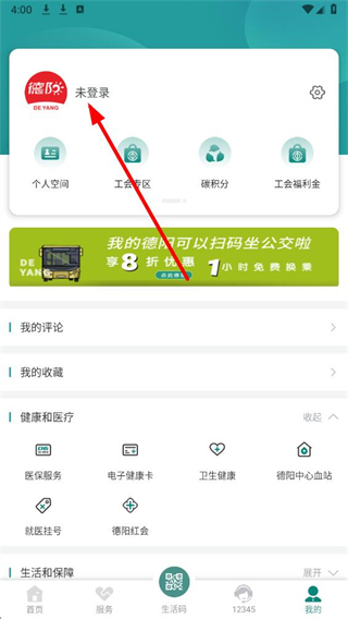 1、在我的德阳app首页点击我的选项,进入个人页面。