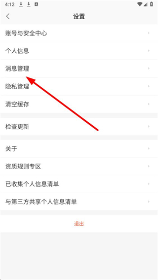 2、在设置页面,点击消息管理选项,进入消息管理页面。