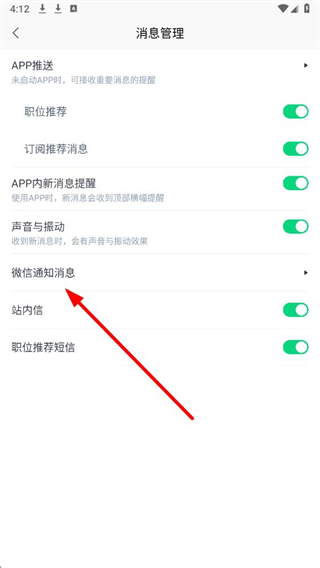 3、在消息管理页面,点击微信通知消息选项,进入开通服务号页面。