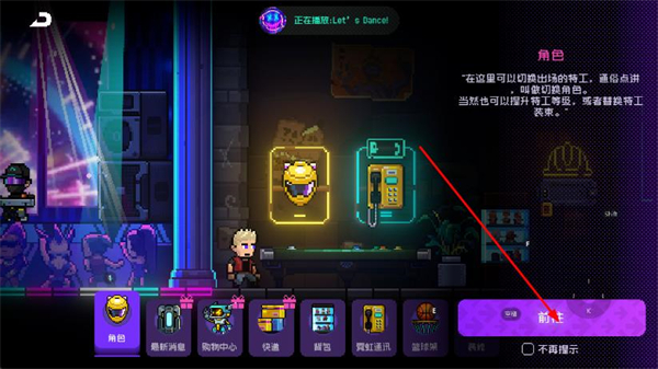 2、在角色页面点击前往按钮,进入角色选择界面。