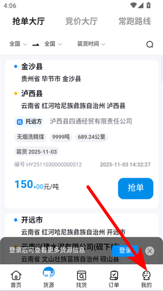 1、打开智通三千司机APP,点击底部我的进入登录页面。