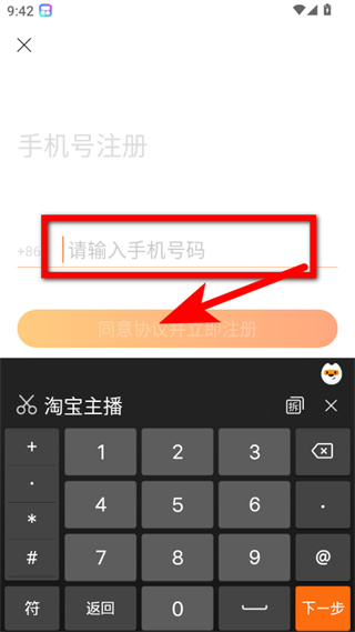 3、在注册界面输入框中填写手机号码,准备进行后续验证步骤。