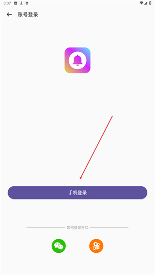 3、进入账号登录的页面内,点击下方手机登录的按钮。