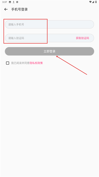4、输入手机号、验证码后,点击立即登录的按钮。
