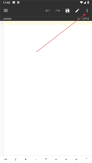 1、打开MT管理器的编辑页面,点击三点图标,展开功能菜单。