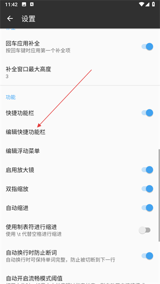 文本编辑器快捷功能栏设置新增选项:记忆展开状态