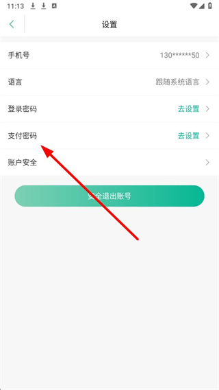3、在设置页面中,点击支付密码选项,按提示验证后设置密码,即可完成操作。