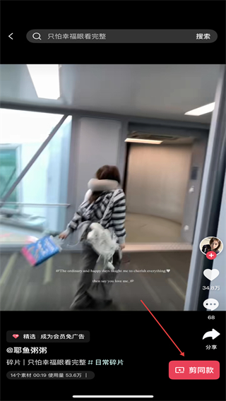 3、点击该模板右下角的剪同款按钮,进入素材替换环节。