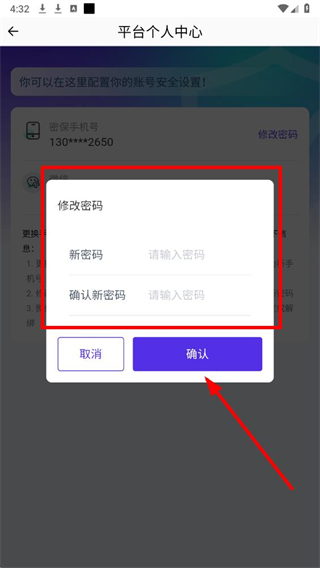 5、在输入框内输入新密码、确认新密码,点击确认即可完成密码修改。