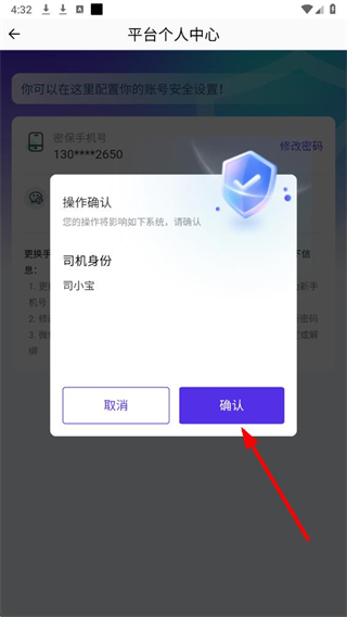 4、在弹出的操作确认框中点击确认,通过手机验证码验证身份。