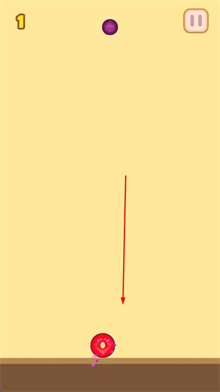 3、在游戏场景中控制紫色水果的下落位置,将其放置到合适区域准备合成操作。